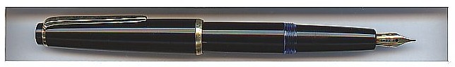 | Besonderheiten - Particularities | Montblanc schwarzer Kolbenfüller in exellenter Erhaltung. Es sind keinerlei Fehler und nur geringe Gebrauchsspuren oder Altersspuren zu entdecken. Oberfläche ohne Risse oder tiefe Kratzer. Vergoldung an Clip und Kappenband einwandfrei. Inschrift "Montblanc No. 32" am Kappenrand. MB Stern in Kappen- und Halterende eingelegt. Im Gegensatz zu allen anderen Füllern dieser Baureihe hat dieser eine kleine freistehende Goldfeder mit der Inschrift "D". Sie ist besonders hart und gedacht um damit Durchschriften zu erstellen. Diese Ausführung ist selten zu finden. Voll funktionsfähig und schreibbereit. |