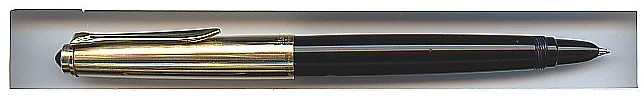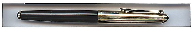 Pelikan piston filler with rolled gold cap and hooded nib. Round ink windows (on the