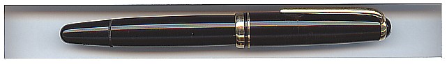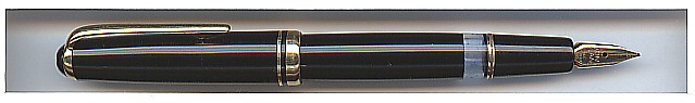 Black Montblanc piston filler with wingnib in near mint condition. It is told, that even today the wing nib offers the most balanced and smoothest writing that has ever been accomplished with a fountain pen. The wing nib combines a very small ink supply at the tip with the regular ink flow and sufficient flexibility. Very attractive. Near perfect highgloss surface, no cracks or deep scratches, except little scratch where the clip meets the cap. Perfect plating Full working and ready to write. Refer to Rösler/Wallrafen Page 28 Rare in this condition! |