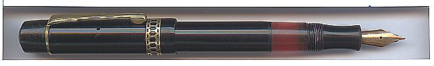 Black piston filler with beautiful ornamented cap band. Probably Germany,