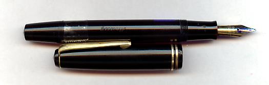 "Marossy" Exellenter Zustand, nur geringe Gebrauchsspuren. Mir ist über den Hersteller nichts bekannt und ich habe auch keine Informationen in der Fachliteratur gefunden. Die Bauform lässt vermuten, daß es sich um einen deutschen Hersteller handelt, ähnlich den Modellen aus den 40er Jahren. Gleitet ausgesprochen sanft und schreibt sehr gut. Voll funktionsfähig und schreibbereit. |