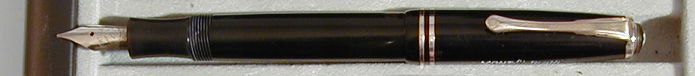 | Besonderheiten - Particularities | Kolbenfueller aus Dänischer Produktion. Erkennbar am anderen Clip und am Kappenabschluß aus Galalith. Inschrift Kappe: MONTBLANC. Einige kleinere Kratzer oder Gebrauchsspuren an Kappe, Clip und Ringen. Klare Inschriften. Schreibbereit. | Piston Filler from Denmark. Recognizable at the other Clip and Capend. Inscription cap: MONTBLANC. A few smaller scratches and signs of use at cap, clip and rings.Clear imprints. Ready to write. | Original Montblanc 14 c 4er M-Goldfeder Origianl Montblanc 14 c M-goldnib |