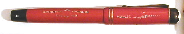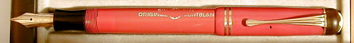 | Besonderheiten - Particularities | Sehr seltener grosser MB 30 Stoss-Fueller in aussergewöhnlich guter Erhaltung. Länge geschlosssen 13,5 cm, mit aufgesetzter Kappe: 16 cm. Nur minimale Verfärbung am Schaft, siehe Foto. Inschrift Kappe: Montblanc Masterpiece, Schaft: Simplo Original Montblanc, Kappenende: 30. Die Bezeichnung Masterpiece besagt, daß der Füller für den Export-Markt hergestellt wurde. Oberfläche klar und glänzend, ohne Kratzer. Jedoch kleine Namensgravur auf dem Schaft. Vergoldung sehr gut. Wirklich sehr schöner, sauberer Füller. Schlauch kann auf Wunsch erneuert werden, sonst schreibbereit. | Very rare large MB 30 Push-Button Filler in extraordinary nice condition. Length closed: 13,5 cm, with cap on: 16 cm. Only tiny discoloration at barrel, look at image. Inscription cap: Montblanc Masterpiece (used for export only), at barrel: Simplo Original Montblanc, at capend: 30. Surface highgloss and clear, no scratches. But small name engraved. Goldplating very good. Really a beautiful, clean pen. Sac can be replace on request, otherwise ready to write. | Große original 4810 Montblanc 14 Karat Meisterstück-Feder