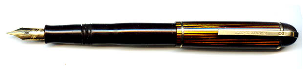| # B028 Eversharp Skyline, USA ca. 1941+, braun/goldgestreifte Kappe- brown/gold striped cap |