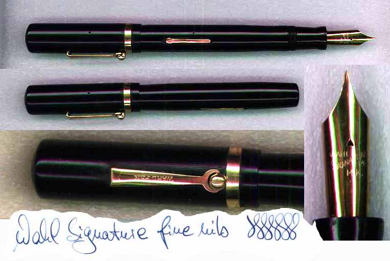 This is the direct predecessor to the large Wahl Personal Point Gold Seal pen. Together with its rollerclip this pen was an original design of the Boston Pen Company, which was overtaken by the Wahl Adding Machine Company for producing high end pens and making money. The rollerclip is engraved with "WAHL PEN", After all that praising now to the blemishes: Thats it, hope you like the pen like I do. Unfortunately I decided to concentrate on other brands and to give away all my Wahl pens. |