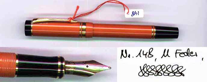 | Besonderheiten - Particularities | Schwierig zu finden und längst aus der Produktion: die zweite Version nach der 1988er Serie mit erhöhten Bändern an Kappe und Halter (die ersten waren flach). komplett mit Konverter und Quink Patronen. Neuwertiger Zustand. |