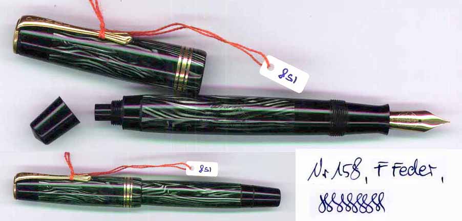 Füller aus grün gestreiftem Zelluloid; Kappenendstück