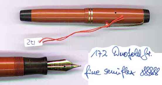length closed 11.4 cm; hard rubber parts discolored; toolmarks in section; trim brassed; button filler with new ink sack; |