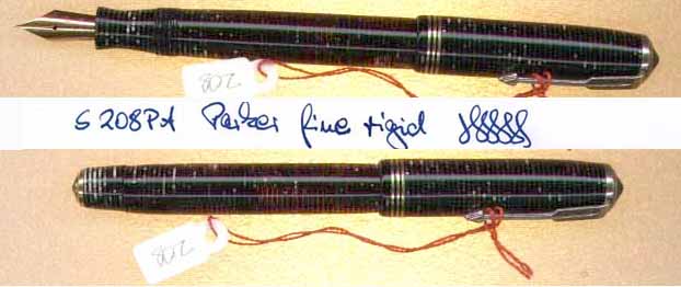 | # S208PA PARKER Vacumatic Standard, Dk c. 1935, ganz perl & silber gestreift, 3 Kappenringe - fully silver pearl striped, 3 cap rings |