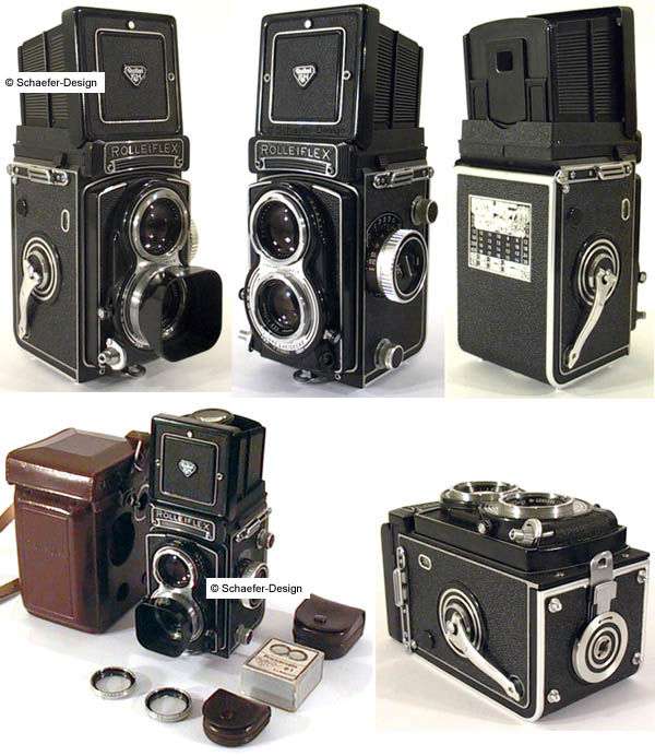Heidosmat 2,8/75 - Tessar 3,5/75 Synchro Compur B, 1, 2, 4, 8, 15, 30, 60, 125, 250, 500 Rollfilm 4x4, 6x6 1958-61 |