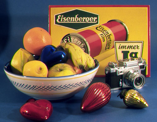 | Objektiv: Verschluß: Verschlußzeiten: Film: Baujahr: |