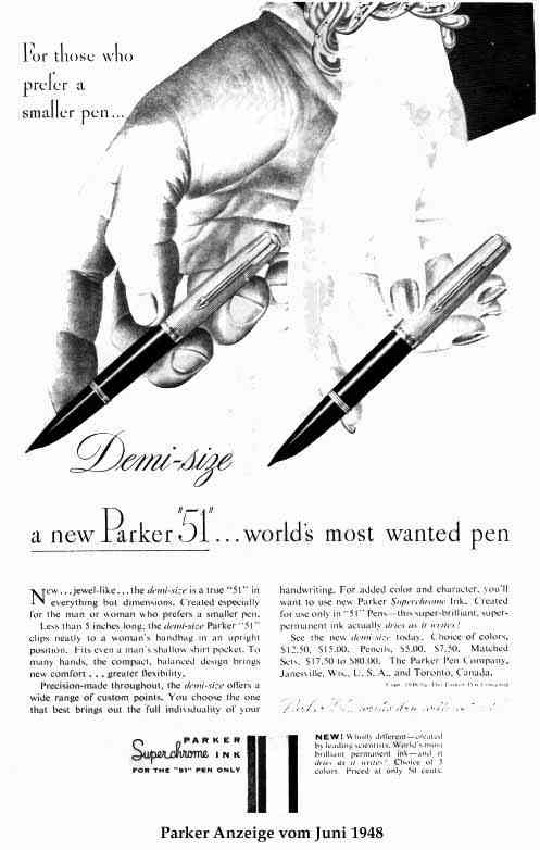 #S48 Parker 51 Demi boxed Set, USA ca. 1948, taubenblau m. Lustraloy-Kappen - dove blue w. Lustraloy caps |