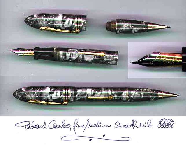 | #S83 Packard Pen/Pencil Combo, USA ca. 1930, perl & grau marmoriert,m Übergrösse - pearl & gray marbled - Oversize |